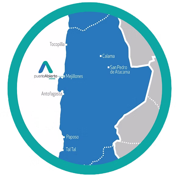 También contamos con de servicios de descarga, embarque, transferencia y almacenamiento de carga en nuestras instalaciones en la bahía de Mejillones, conectada con las principales carreteras de la Región de Antofagasta y del norte de Chile.